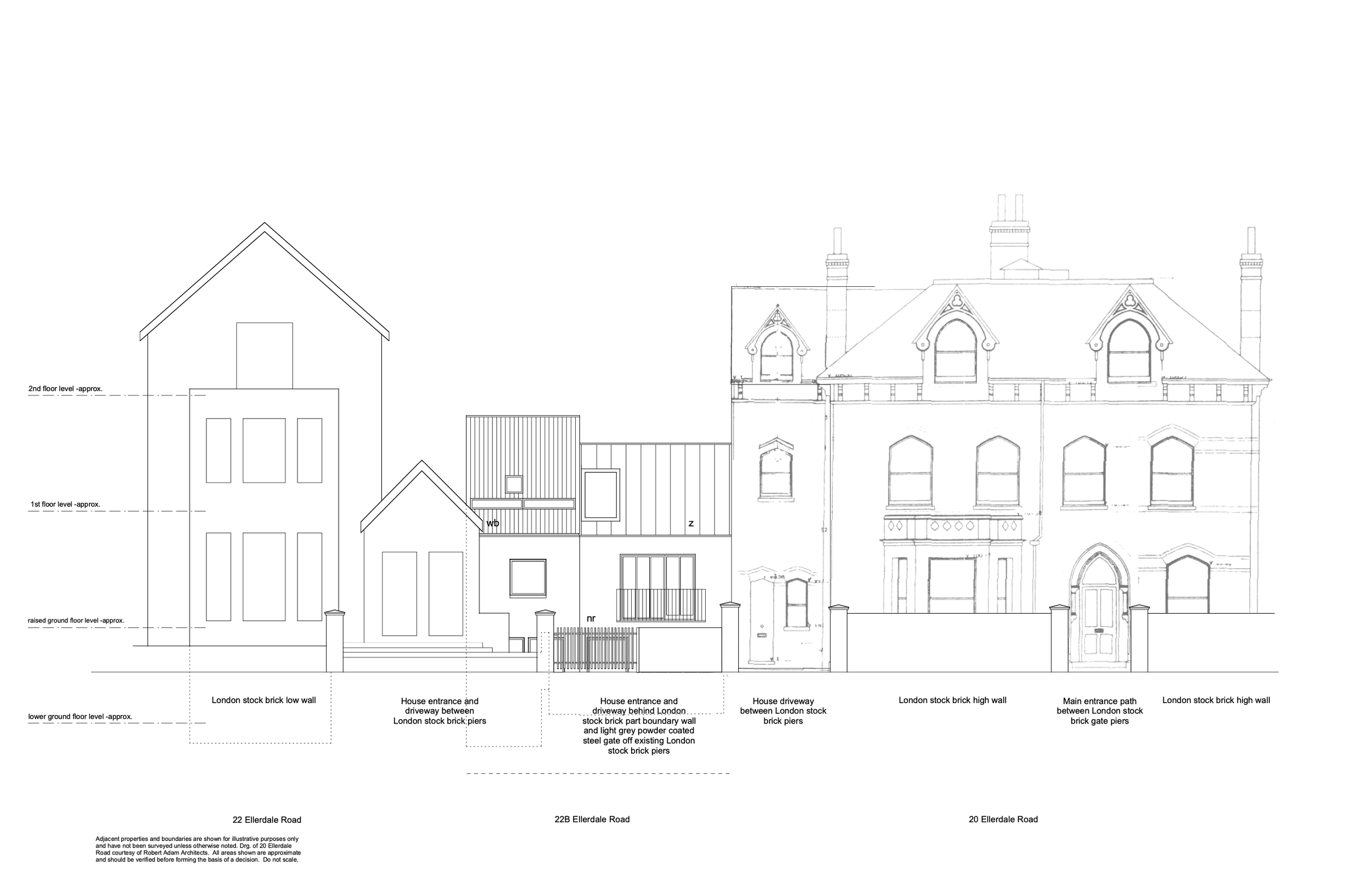 The approved design contributes positive enhancement of the Conservation Area and complements the Victorian character, material and scale of its neighbours. The permitted design would contrast with its attached neighbour in form, proportion, detail and sympathetic natural materials. The scheme remains to be implemented. The planning permission for remodeling was accompanied by a letter from Camden Council inviting an alternative, demolition and construction of a new house on the site.