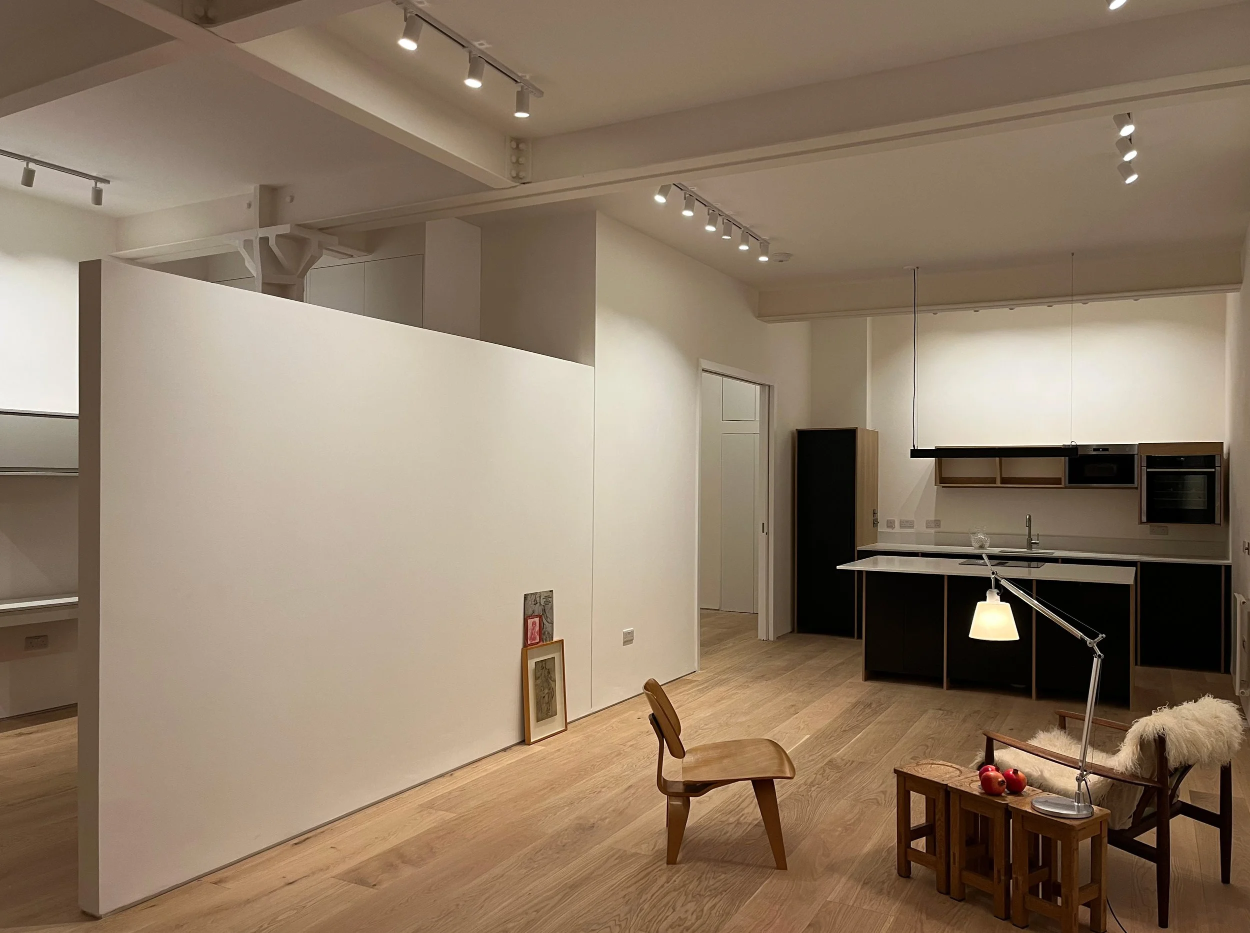 We transformed a poorly developed and graceless “rental flat” on the edge of the City of London by reinstating its lost character. Careful investigation enabled the dismantling of the unimaginative 1990’s interior to reveal the archaeology of an industrial warehouse. Heroic early 20th century structure, brick pilasters, and original surfaces were entirely hidden behind plasterboard shrouding.